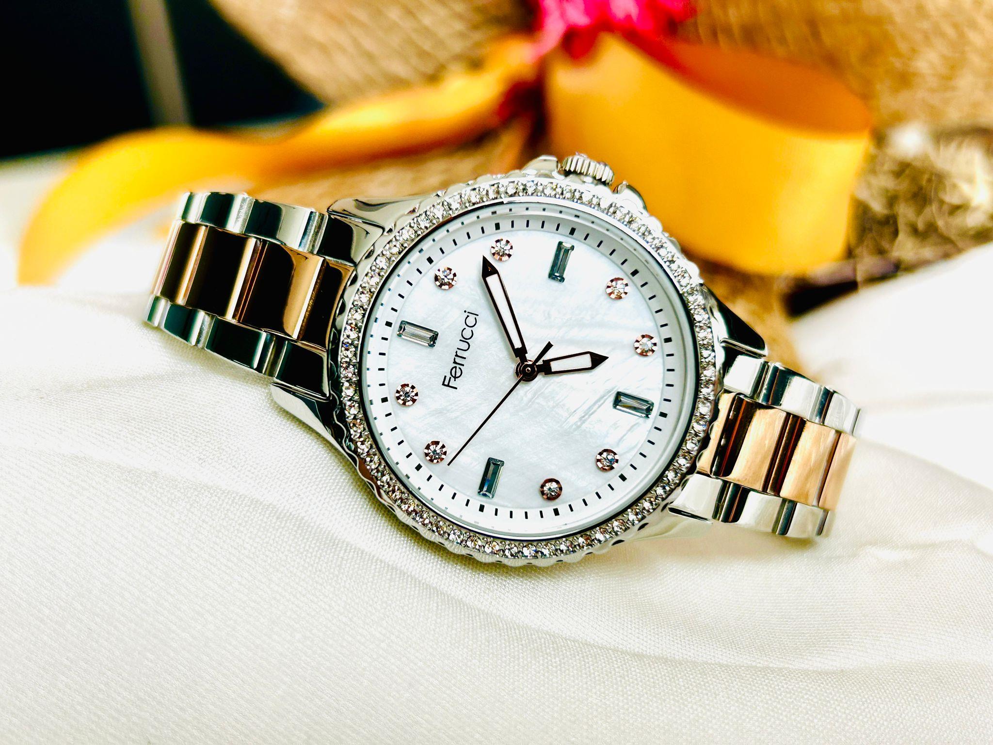FC.14020M.02 Rose-Gümüş renkte ve çelik kasalıdır. 33 mm kasa çapına sahiptir. Saatimizin kordonu ise metal malzemeden oluşmaktadır ve Rose-Gümüş renktedir. Yuvarlak kasa şekline sahip saatimizin analog ve Gümüş renk kadranının altında, yıllarca sorunsuz kullanacağınız Quartz teknolojisi mevcuttur. Saatimizin su geçirmezliği 3 Atmdir. Ferrucci marka saatimiz, 2 yıl garantilidir. Ürünümüz orijinal kutusu ve garanti belgesiyle birlikte paketlenerek sizlere gönderilir.